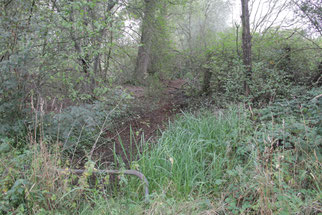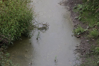 Am Kreuzwildweg in Strümp wird das Gewässsersystem nach wie vor von der Quelle gespeist. Deshalb fällt der Bach auch bei wenig Niederschlag nicht komplett trocken. Im direkten Bereich des Quellzuflusses ist das Wasser klar: